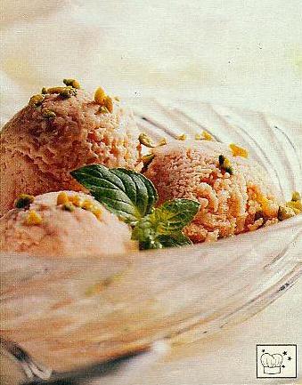 Mit dem Handrührgerät Eier schaumig rühren, Zucker und Vanillezucker einrieseln lassen, weitere 4 Minuten rühren. Gesiebtes Mehl unterheben. Teig auf ein mit Pergamentpapier ausgelegtes Backblech streichen. Im vorgeheizten Backofen bei 180-200 Grad 15-20 Minuten backen. Den Biskuit nach dem Backen sofort auf ein angefeuchtetes Küchentuch stürzen. Pergament abziehen. Biskuitplatte mit dem Küchentuch einschlagen und abkühlen lassen. Sahne, Zucker und Vanillezucker steif schlagen. 15 Kirschen klein schneiden. Diese mit Mandeln, Nüssen und Orangenlikör vorsichtig unter die Sahne heben. Eine kleine Kastenform mit Pergamentpapier auslegen. In diese Form für die Seiten und zum Abdecken den Biskuitboden zuschneiden und die Form damit auslegen. Sahnemasse einfüllen, glatt streichen, Biskuitplatte darauflegen und leicht andrücken. Die Form in Folie einpacken und 4-5 Stunden im Gefriergerät fest werden lassen. 30 Minuten vor dem Servieren das Halbgefrorene herausnehmen, auf eine Platte stürzen, Pergamentpapier abziehen, mit flüssiger Kuvertüre überziehen. Wenn diese fest geworden ist, mit Sahnetupfen und Maraschinokirschen verzieren. Bis zum Servieren in den Kühlschrank stellen.