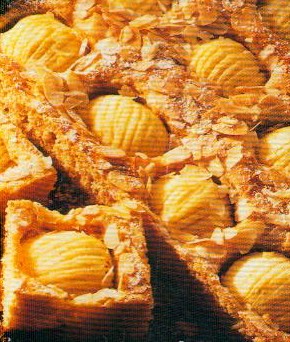 Für die Füllung, die getrockneten, gehackten Äpfel in dem Apfelbrand einweichen. Honig und Zucker in einem Topf bei milder Hitze langsam unter Rühren auflösen, nicht kochen und anschliessend 2 Stunden bei Zimmertemperatur stehen lassen. Hirschhornsalz in wenig Wasser auflösen und zusammen mit dem Weizenmehl unter die Zucker-Honig-Mischung kneten. Das Roggenmehl, die ebenfalls in etwas Wasser aufgelöste Pottasche sowie die übrigen Zutaten unterkneten, den Lebkuchenteig 1 Stunde kalt stellen. Für die Füllung die zerbröckelte Marzipanmasse mit dem Apfelgelee und den eingeweichten Trockenäpfeln zu einer glatten Masse verrühren. Den Lebkuchenteig in kleinen Portionen auf einer mit Mehl bestäubten Arbeitsfläche 3-4 mm dick ausrollen; mit einer Ausstechform 65 x 35 mm große Glocken ausstechen, sollte etwa 50 Stück ergeben. Die Füllung in einen Spritzbeutel geben und auf die Hälfte der Teigglocken spritzen, dabei den Rand frei lassen. Die andere Hälfte der Teigglocken vorsichtig darauflegen und am Rand festdrücken. Die Glocken leicht mit Milch bepinseln. Ein Backblech mit Backpapier auslegen und die Glocken vorsichtig darauflegen. Im auf 180 Grad vorgeheizten Backofen ca. 10 Minuten backen. Auskühlen lassen, die Glasur zubereiten, die Glocken damit überziehen und mit den Pistazien verzieren.