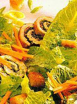 Blattsalat mit Putenröllchen und Croûtons · Kochstudio