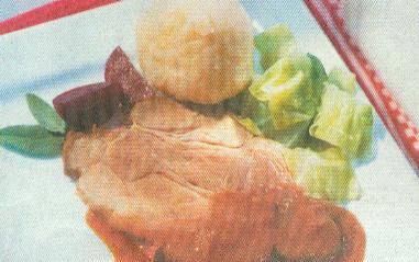 Fischfilets abbrausen, trocken tupfen, salzen und pfeffern. Mangold in Salzwasser 1 Minute kochen, trocken tupfen. Pilze putzen, Tomaten entkernen, beides würfeln. Lauchzwiebel putzen, in Ringe teilen. Alles mit Eigelb und Toastbrotwürfeln mischen, würzen. Den Backofen auf 200 Grad vorheizen. Masse auf die Mangoldblätter streichen, je 1 Fischfilet darauf legen, einwickeln. Fisch in eine grosse Form legen, Wasser angiessen. Im Backofen 15 Minuten garen. Rote Bete in Streifen teilen. Sauce Hollandaise erwärmen. Fisch mit Sauce und Roter Bete anrichten.