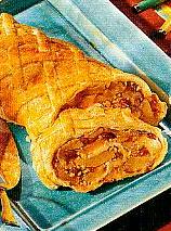 Äpfel waschen, jeweils einen Deckel abschneiden. Das Fruchtfleisch mit einem scharfkantigen Löffel bis auf einen schmalen Rand herauslösen. Das Kerngehäuse entfernen und das Fruchtfleisch fein würfeln. Ausgehöhlte Äpfel innen mit Zitronensaft bestreichen. Die Fruchtstückchen ebenfalls mit etwas Zitronensaft beträufeln. Sellerie schälen, fein würfeln und mit den Apfelstückchen mischen. Sahne halb steif schlagen. Nach und nach die Mayonnaise unterrühren, so dass eine cremige Sauce entsteht. Mit Salz, Pfeffer und Zucker abschmecken. 4 Nusshälften beiseite legen, Rest hacken, mit Apfel-Sellerie-Mischung unter die Sauce heben. Die Äpfel damit füllen und mit den Walnusshälften garnieren. Auf Salatblättern anrichten.