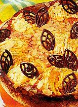 Mehl mit 50 g Zucker, Citro-back, Salz mischen. Hefe zerbröckeln, in der erwärmten Milch auflösen. Mit Butter und einem Ei unter das Mehl kneten und etwa 30 Minuten gehen lassen. Äpfel schälen, halbieren, Kerngehäuse entfernen. Die Fruchthälften einkerben, mit Zitronensaft beträufeln. Fur Guss Sahne mit restlichen Eiern, Vanillezucker, übriger Zucker und Zimt verrühren. Backofen auf 175 Grad vorheizen. Hefeteig erneut durchkneten. Springform fetten, mit Teig belegen, nochmals 20 Minuten gehen lassen. Äpfel darauf verteilen, den Guss darüber geben und Mandeln aufstreuen. Ca. 50 Minuten backen. Auskühlen lassen, aus der Form lösen und mit Dessert-Dekor verzieren.